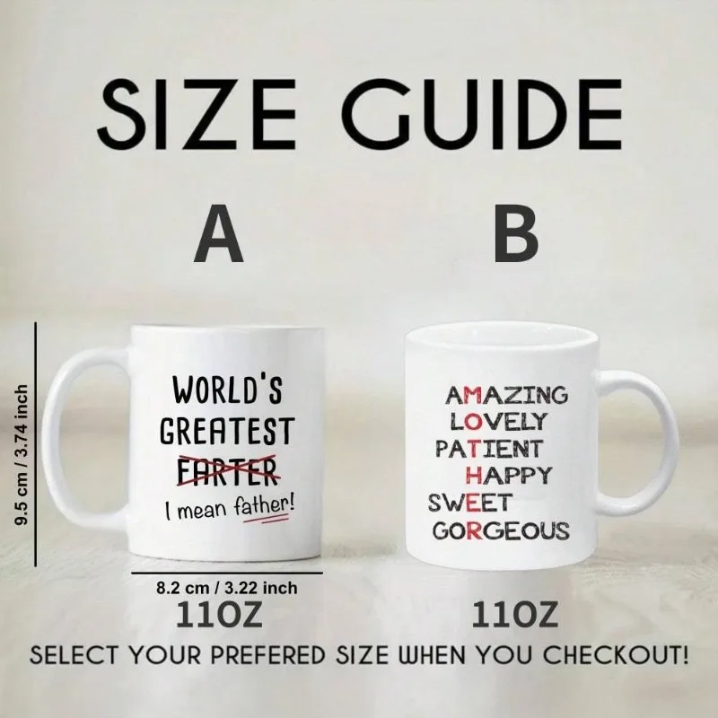 This humorous 11oz ceramic coffee mug features a playful print that says 'World's Greatest Farter I Mean Father', adding a touch of fun to your daily routine. Crafted from high-quality ceramic, it is safe for both hot and cold beverages, including coffee, tea, cocoa, milk, or water. The mug is durable, dishwasher-safe, and perfect for home kitchen use. It makes an excellent gift for various occasions such as birthdays, Father's Day, Mother's Day, or as a thoughtful present for parents. Its versatile design ensures it can be used year-round, providing a comfortable grip and easy cleaning.