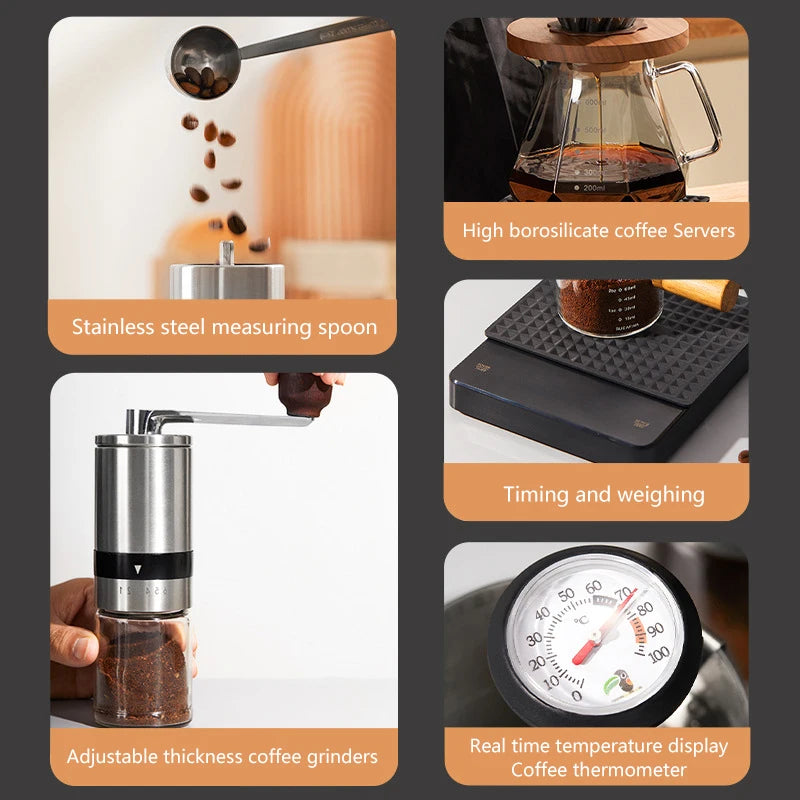 Coffee Set Coffee Accessories Manual Grinder Mill Glass Pot with Filter Dripper Gooseneck Kettle Specialized BaristaSet