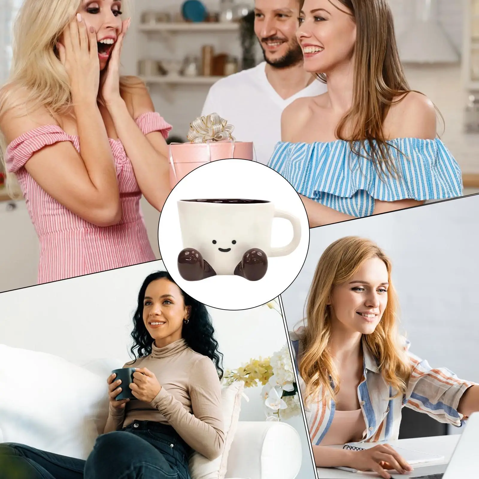 Cute Ceramic Mug Adorable Home Kitchen Drinkware Novelty Teacup with Handle for Latte Water Milk Hot Cocoa Cold Hot Drinks