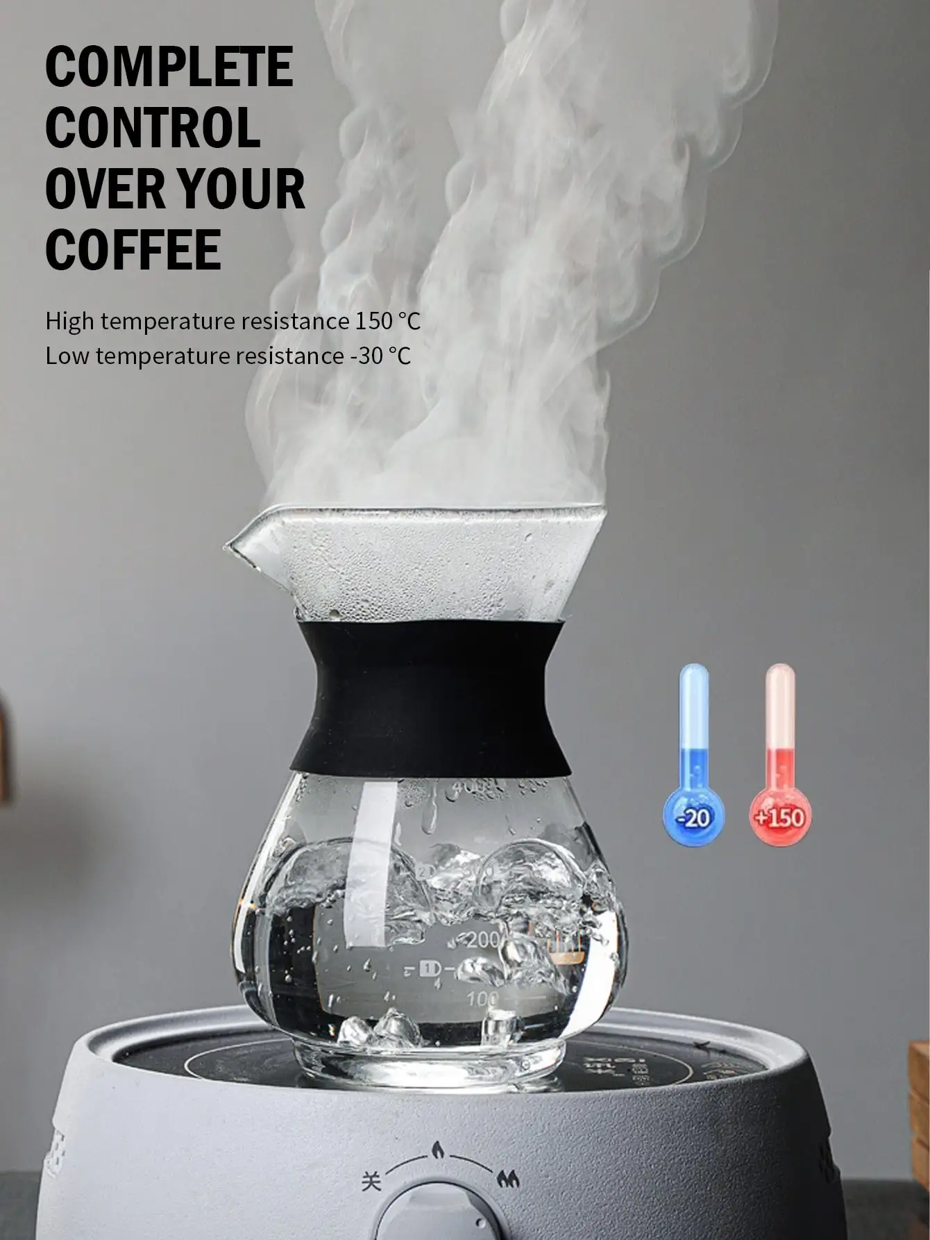 STOVE SAFE AND DISHWASHER SAFE: Our pour over coffee pot is made of strong non-porous borosilicate glass, which can easily withstand high temperatures up to 150℃(302℉); for quick and easy cleaning, simply place the metal filter and coffee maker in dishwasher.