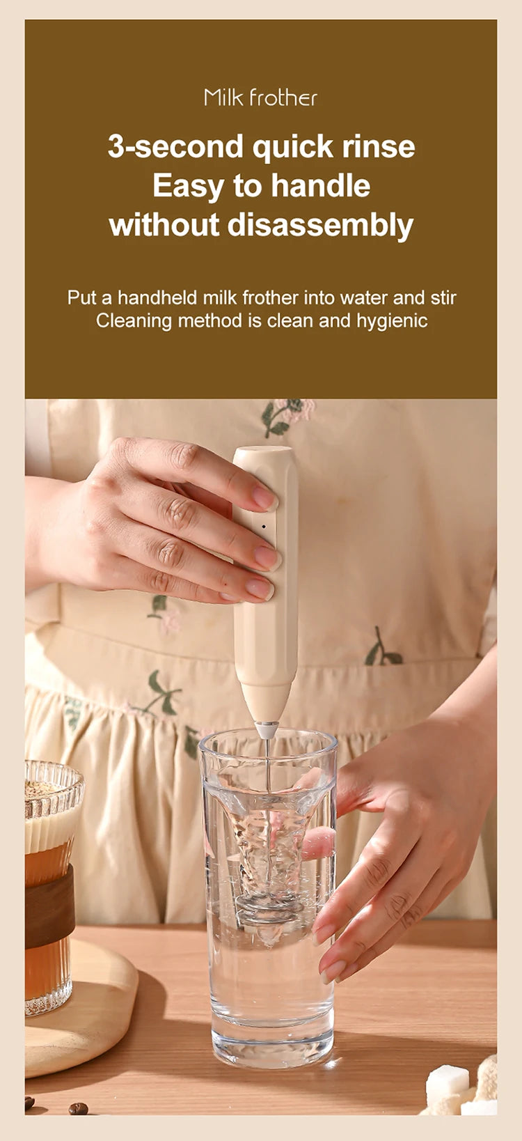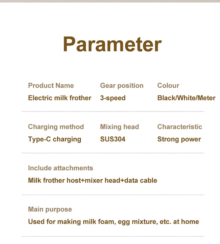 The compact mini milk frother mixer is easy to carry, equipped with a small battery for easy use when going out. It also has a Type-C charging port, 3-speed beating speed, and strong power with fast RPM.