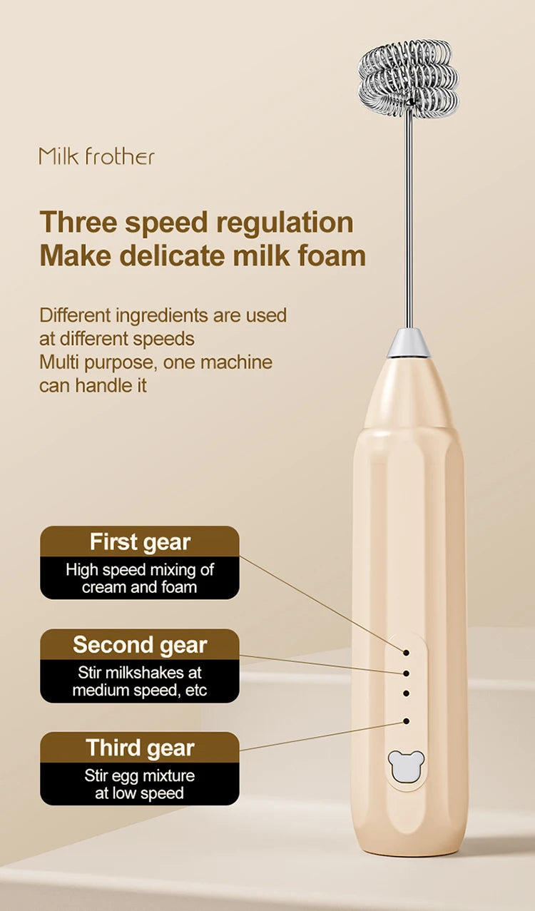 MINI Coffee Frother USB Rechargeable 3 Speeds Foam Maker Coffee Milk Mixer Electric Handle Blender Egg Beater Hot Cooking Tools