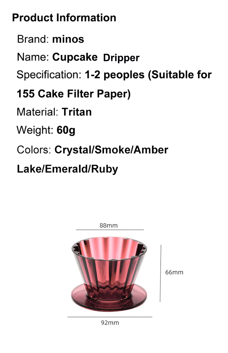 Minos Cupcake Dripper, Pour Over Coffee Dripper, Pour Over Coffee Maker (Fits 155 Filter Paper) - Ideal for Home, Office,