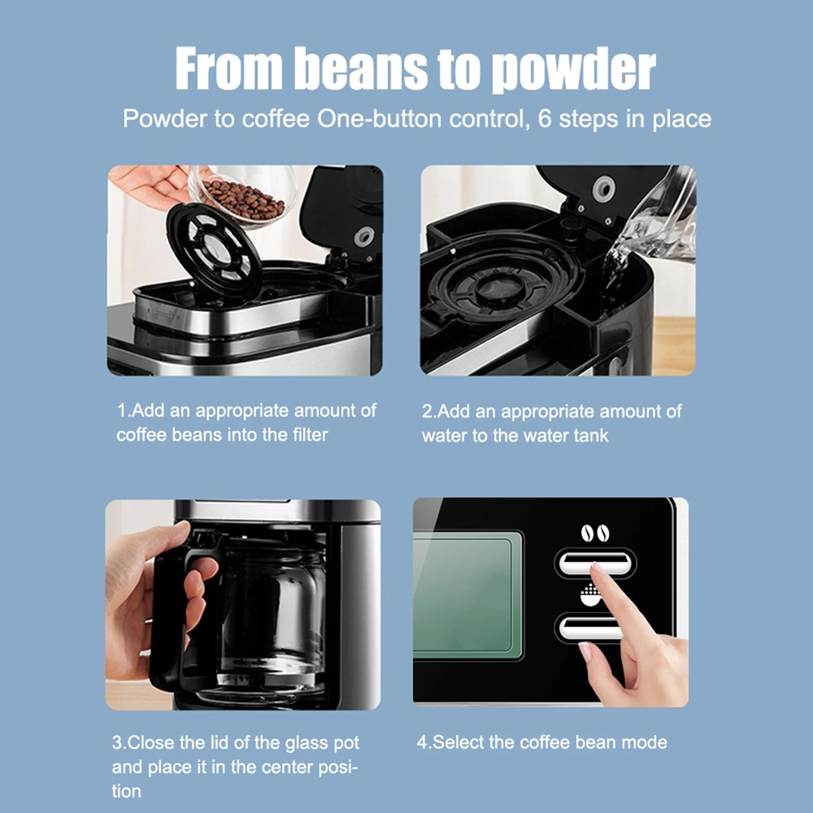 Programmable Coffee Maker with Timer 1050 Watts 1L Large Capacity 2-8 CupsDrip Coffee Maker Grind Brew Automatic Coffee Machine